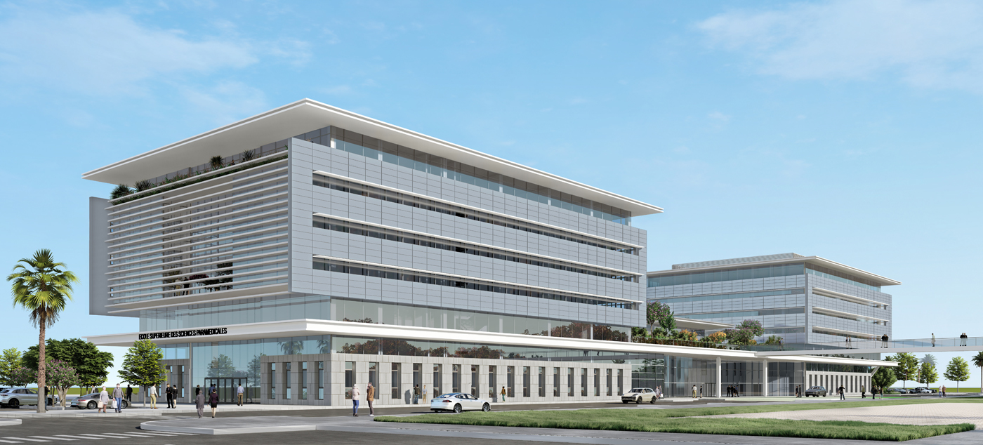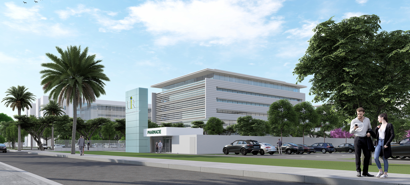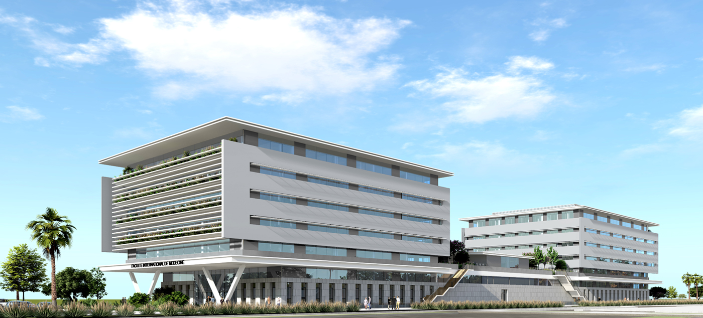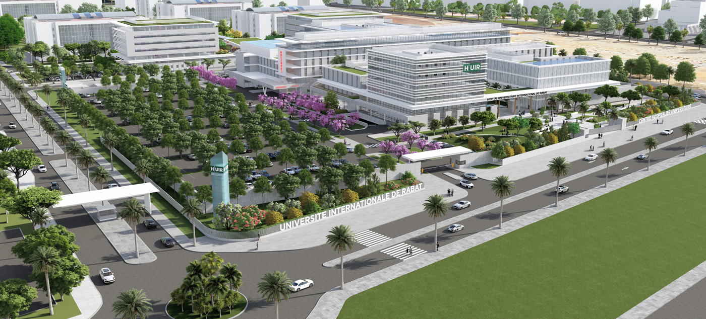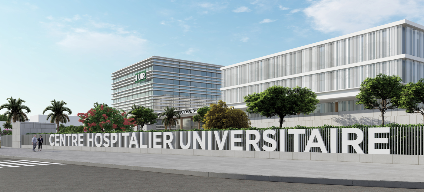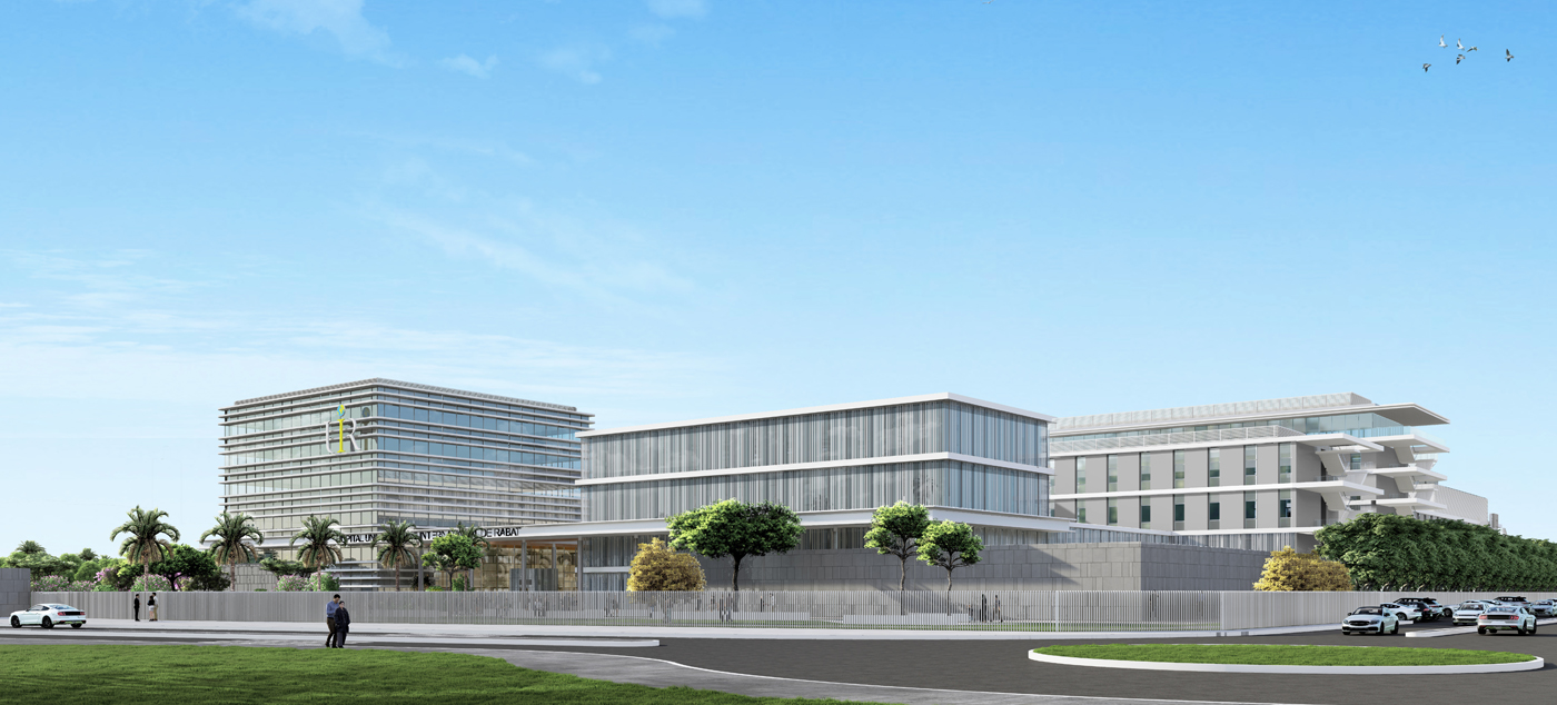 Nous avons remporté le concours pour la réalisation de l’Hôpital Universitaire International de Rabat, actuellement en cours de construction. Ce projet ambitieux regroupera autour de trois bâtiments les activités d’ambulatoire, de plateau technique et de cancérologie. Il s’inscrit dans une stratégie nationale visant à proposer une nouvelle offre hospitalière et universitaire au Maroc. Situé au cœur d’un futur pôle d’excellence, il participera pleinement à la prise en charge des malades, à l’enseignement et à la recherche.